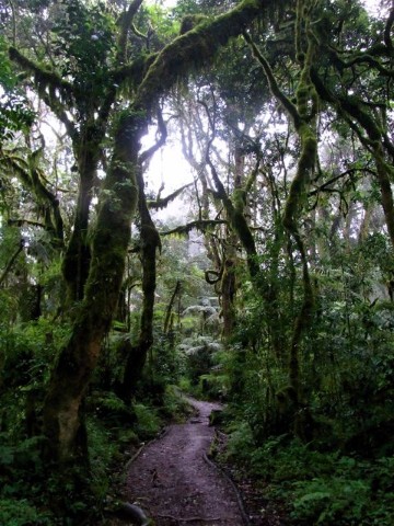 Kaffee- und Bananenplantagen ziehen sich an den unteren Hängen des Berges entlang und definieren den Übergang zur Zone, an welcher der Bergwald beginnt. Ein durchschnittlicher Niederschlag von 2000 mm pro Jahr macht diesen Wald zur Heimat einiger botanischer Schätze: Baumfarne werden in dieser Region bis zu 20 Meter lang, große Lobelien erreichen oft 30 Meter. Auf einer Höhe von etwa 2700 Metern, dort weicht der Wald dann Wiesen und Gebüsch, streifen manchmal vereinzelte Elefanten über die hoch gelegenen Pisten. Bei etwa 4000 m beginnt das Leben nachzulassen, eine Folge der extremen und unwirtlichen Wetterbedingungen, - lediglich Moose und Flechten können hier noch existieren. Nachdem der höchste Punkt erreicht ist, sind drei Gletscher und drei vulkanischen Gipfel zu sehen und von dort aus ist eine gelassene Betrachtung der enormen Ebenen über 4000m weiter unten möglich.