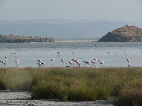 Lake Natron ist ein riesiger Salzsee im Norden Tansanias und liegt am Fuße des heiligen Berges der Maasai Ol Doinyo Lengai. Er beherbergt eine große Zahl von Vogelarten, insbesondere eine riesige Population von Zwergflamingos mit über 2,5 Mio. Exemplaren. Der See ist voller Salinenkrebse und Cyanobakterien (Nahrung der Flamingos), die dem See - aus dem Weltraum gesehen - eine rötliche Farbe geben.
